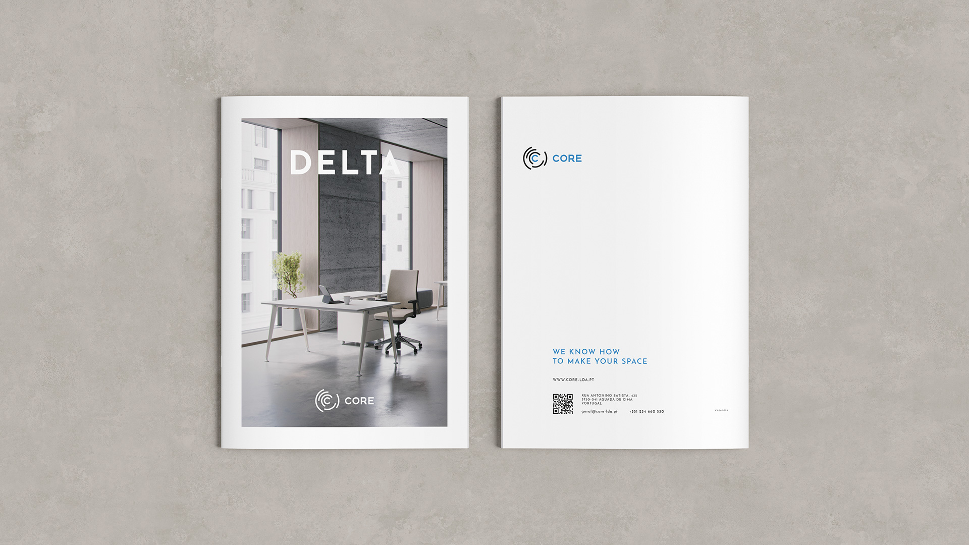 Core's new Delta product brochure boasts maximum attention to detail and strategic vision. This communication piece emphasizes functionality, minimalism, and clarity in presenting this furniture range in four languages. It also features CGI images that highlight the application of the products in functional and modern contexts with an excellent degree of realism.